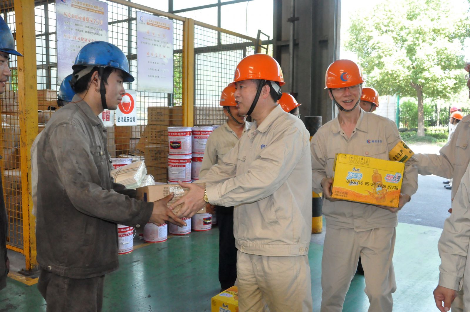 7月26日下午,公司董事长曹坚、总裁朱洪章等公司领导一行10人,顶着烈日高温深入常宝股份、常宝精特车间生产现场,亲切慰问奋战在高温一线的干部员工,并一一送上冰红茶、酸梅汤、毛巾等防暑降温饮品(用品),对他们坚守岗位、为常宝生产经营的稳步增长和持续发展所作出的贡献表示衷心感谢。
