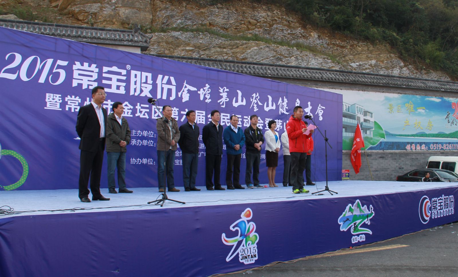 本次登山活动由公司冠名协办。常宝股份副总经理张兰永在启动仪式上代表公司向大会致词,预祝2015年金坛茅山登山健身大会圆满成功,祝运动健儿们取得优异的成绩,并与省社会体育管理中心、金坛市等领导共同为本次登山活动鸣枪发令。