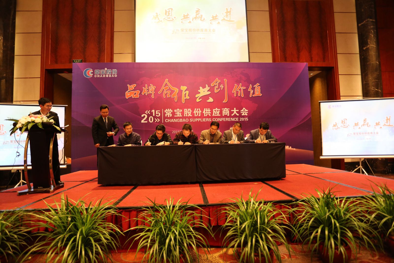 会议期间,总裁朱洪章还为获得常宝2014-2015年优秀供应商代表颁奖,同时十家优秀供应商代表上台签署了供方承诺书,与常宝建立务实守正、互利共赢的长期合作关系。(责任编辑 刘志峰)