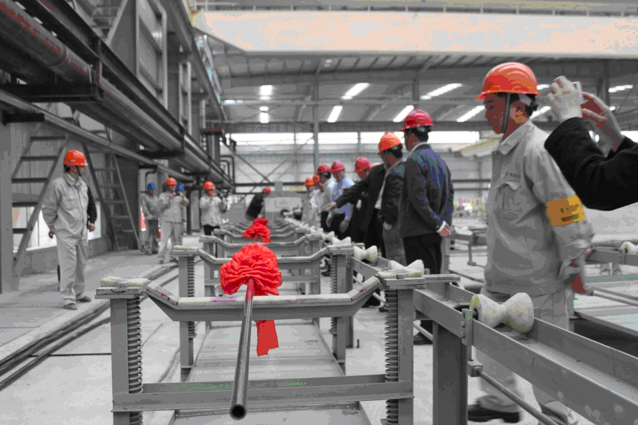 4月30日,常州常宝精特能源管材公司U型管项目第一支精密钢管试轧成功。本次试生产规格为22mm*2.6mm,经检测,产品的尺寸精度、表面质量均超过了产品标准要求。董事长曹坚、副董事长陈普安、总裁朱洪章等公司领导亲临生产一线,为能源管材一期试生产成功进行剪彩,对试生产成功表示热烈祝贺。