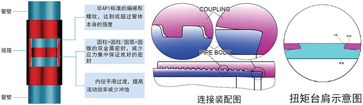 4)双台肩密封——双台肩设计抗过扭矩,保证密封性能。